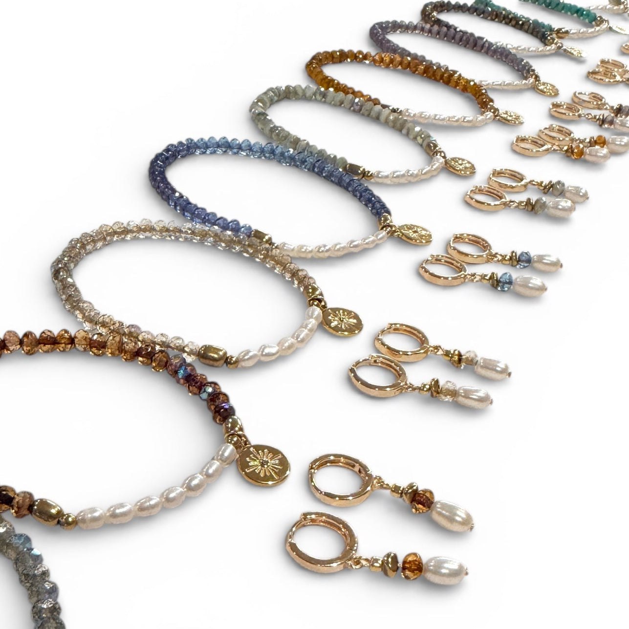 Our Beachcomber Earrings are perfect for daily wear, no matter the season. Featuring delicate white freshwater pearls stacked with shimmering Czech glass and brass beads, these earrings are perfect for all fits from athleisure to glam.