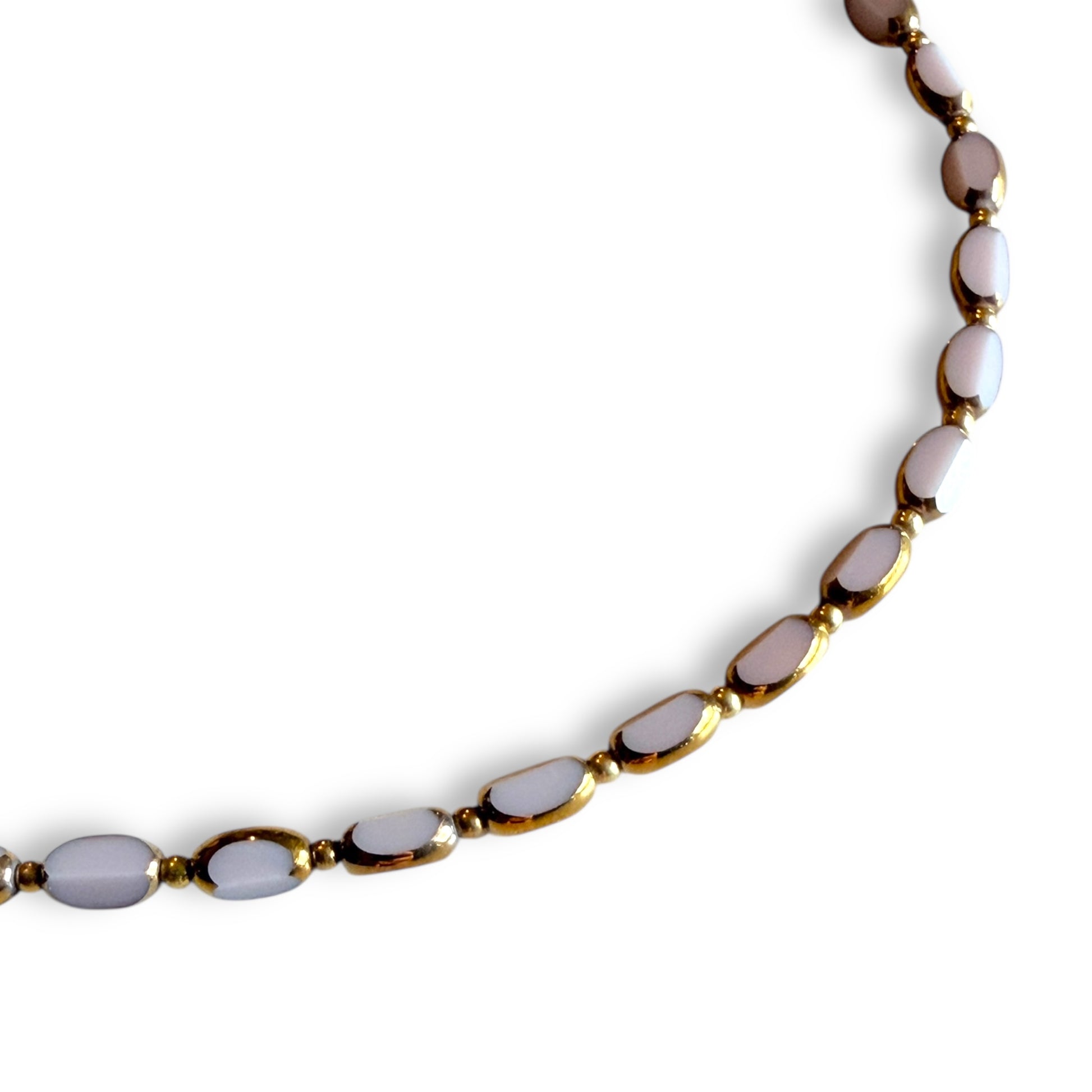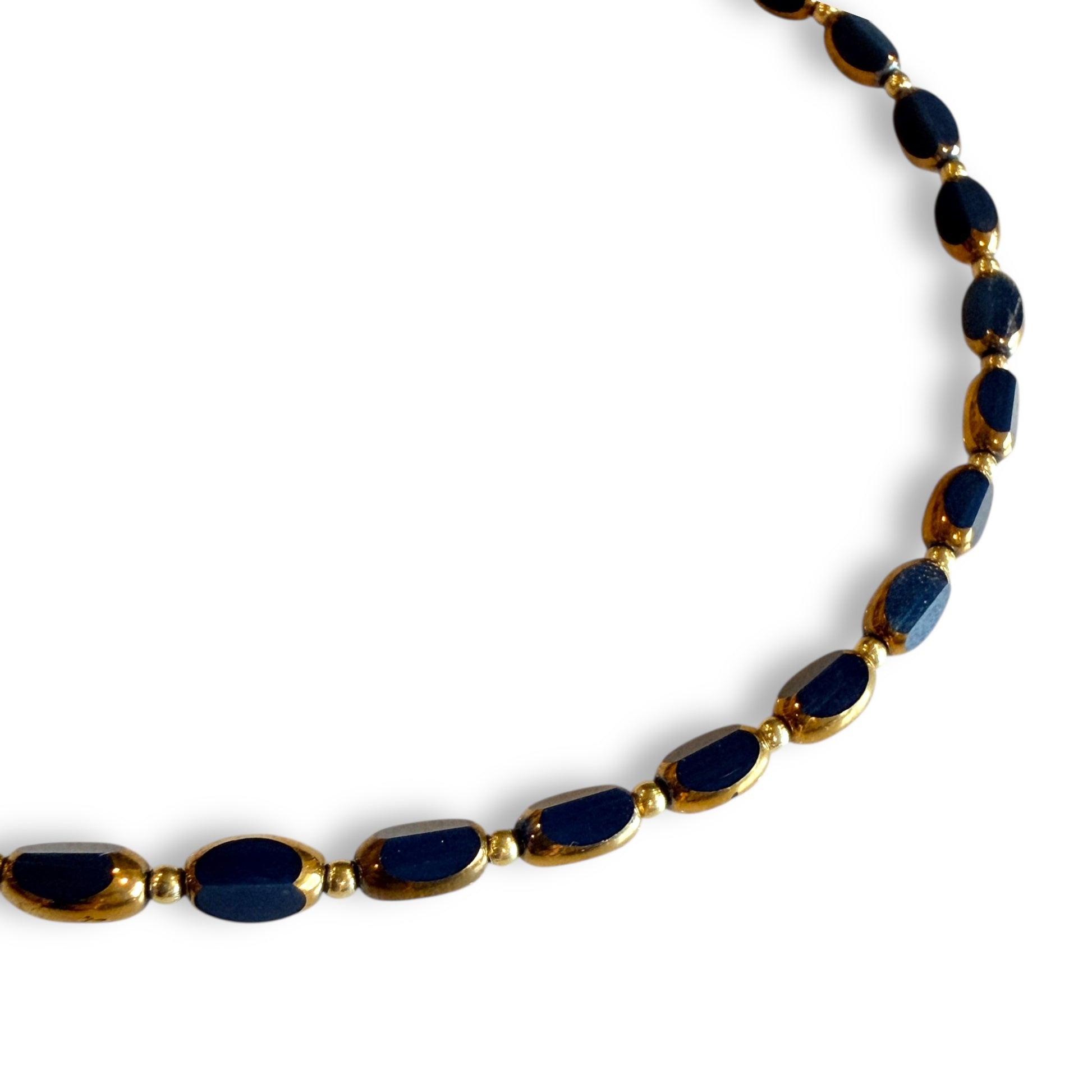 Our crowd fave in luxe transparent gemstone and solid hues. Made of hand crafted gold lined glass and brass beads. Timeless and chic, this effortless original design layers together for shimmering texture or stands alone as a pop of color to your favorite dainty gold pieces.