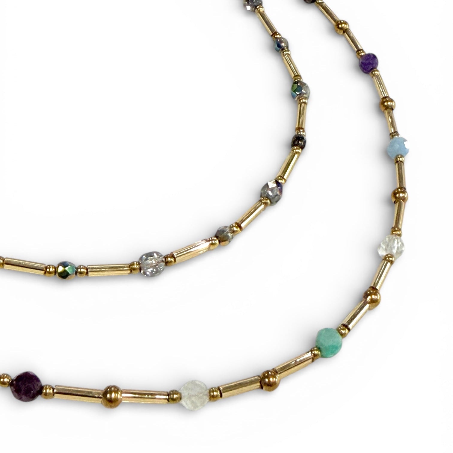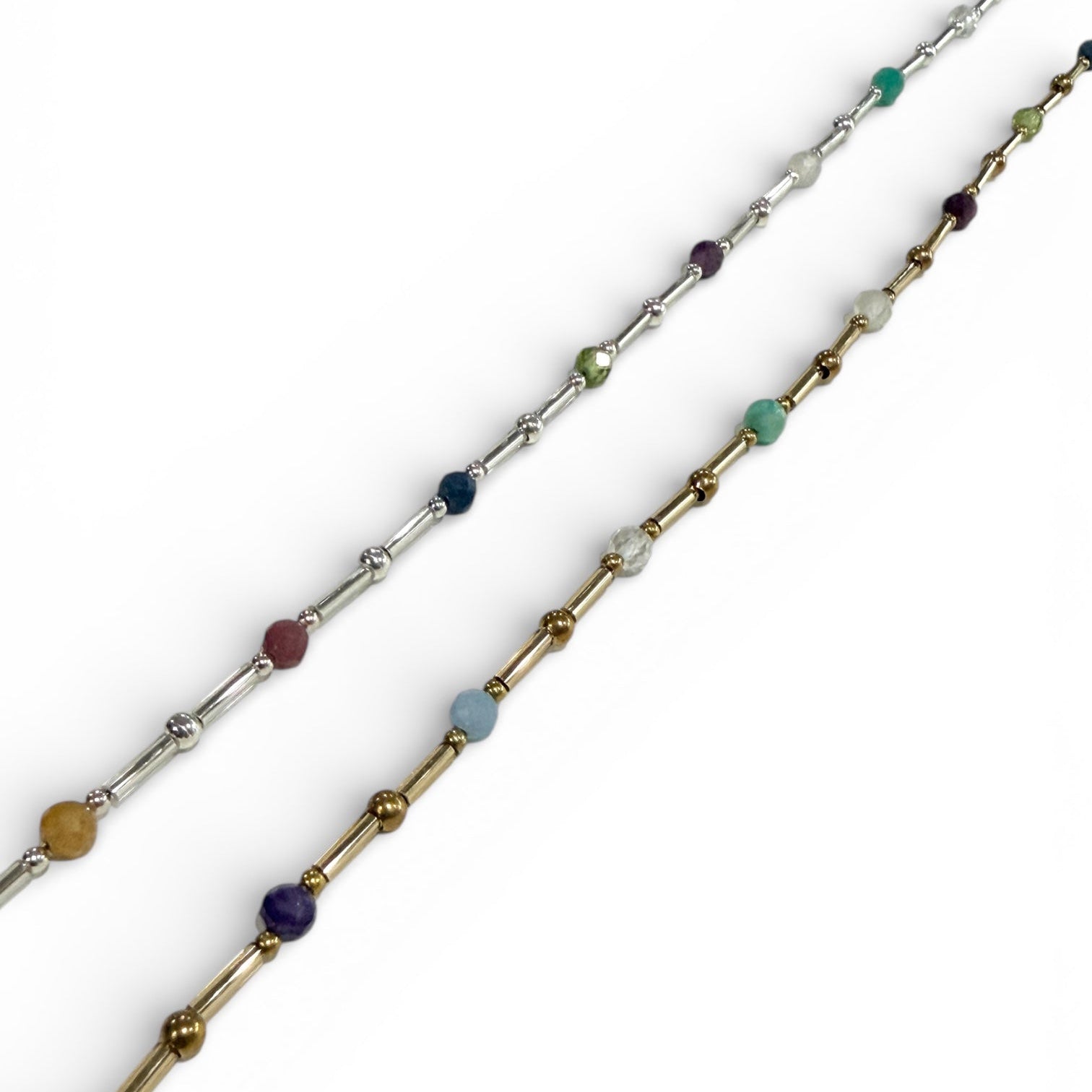 Our Renew Necklace represents the cycle of our year. We end it with reflections and begin it with new intentions. Crafted with delicate gold or silver glass tube beads and coordinating brass or sterling silver beads, this necklace is adorned in 12 months of genuine birthstones. Add a touch of color and sparkle with this beauty that layers well with our Twilight and Everything necklaces.